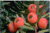trägt rote Früchte, alle Pflanzenteile enthalten starke entzündungsauslösende